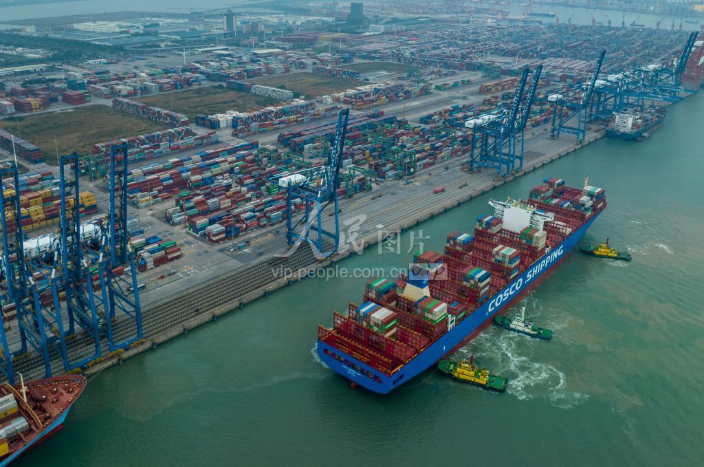 2023年2月19日,繁忙的广州南沙港二期码头。南沙二期码头作为广州少数能够承担超大型集装箱船的港区之一,承载着珠三角经济腹地进出口的运输重任。