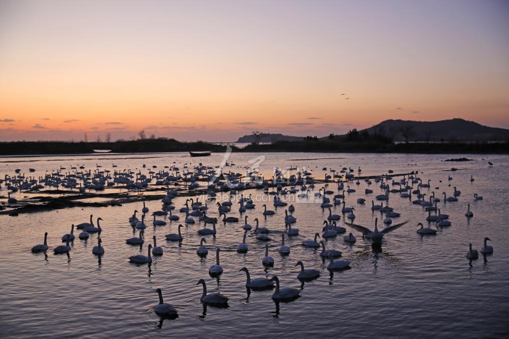 2023年2月21日清晨,在山东省荣成市天鹅湖,大天鹅映着朝晖成群结队飞舞,场面壮观,吸引着不少游客和摄影爱好者前来观赏、拍摄。 据荣成大天鹅国家级自然保护区工作人员介绍,目前大天鹅已进入迁徙季,已有500余只大天鹅踏上回迁之旅,大批没开始回迁的大天鹅们频繁练飞,随时准备回迁。为保证大天鹅有充足体力回迁,保护区工作人员定时为大天鹅投食。山东荣成是中国大天鹅之乡,每年有近万只大天鹅来此越冬。
