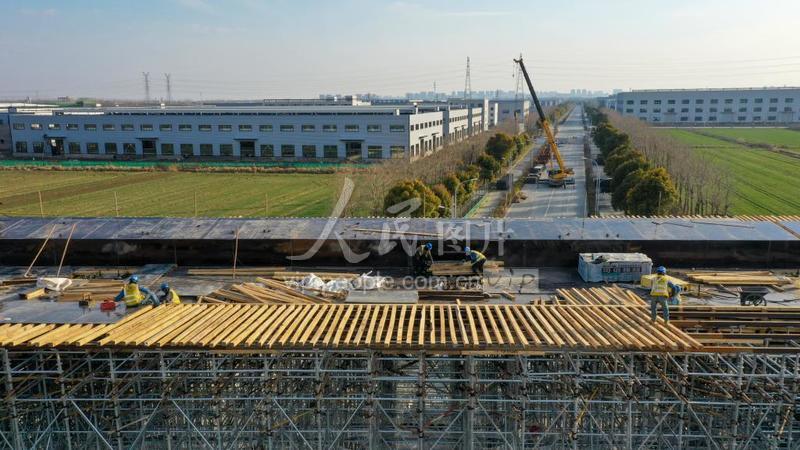 2023年2月21日,在江苏省宿迁市盐洛高速公路宿城至泗洪段工程一施工现场,工人们正在全力以赴抢工期建设,确保项目早日完工。