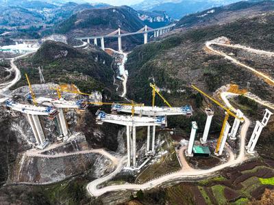 2023年2月24日,贵州省毕节市纳雍县寨乐镇英底村纳(雍)至晴(隆)高速公路英底大桥施工现场。