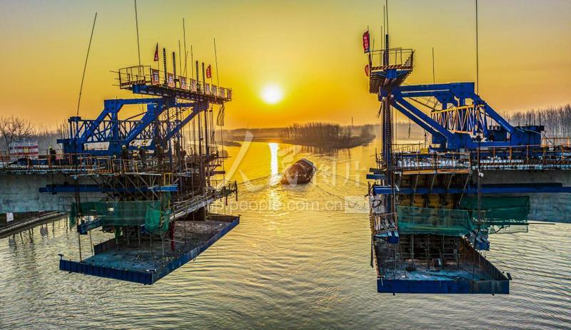 2023年2月26日,江苏省宿迁市宿豫区仰化镇268省道京杭大运河特大桥项目施工现场。
