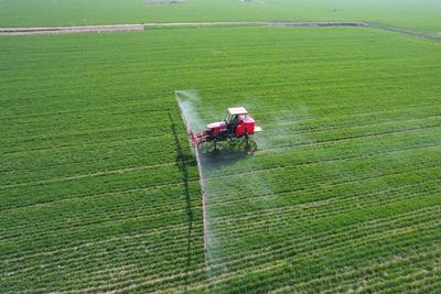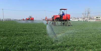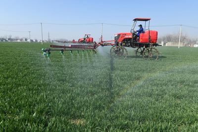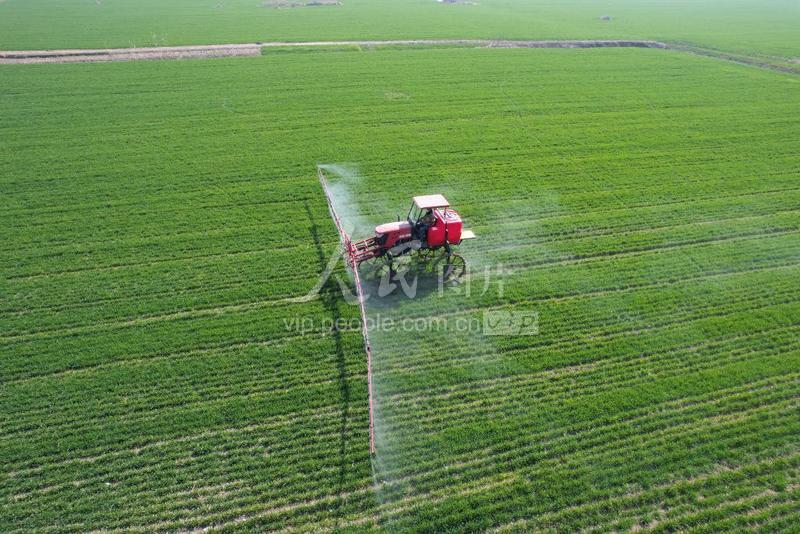 2023年2月27日,在安徽省阜阳市颍州区三塔集镇徐寨村,当地一家农机服务专业合作社组织自走式植保喷雾机械对托管的小麦进行田间管理。 当前正值春耕时节,连日来,作为“全国粮食主产区之一”和素有“江淮百亿粮仓”之称的阜阳市积极利用各类植保机械,抢抓晴好天气有利时机,积极开展小麦春季田间管理,为再夺午季粮食丰收打下坚实的基础。