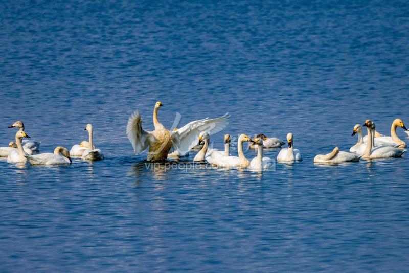 2023年3月5日,在安徽省淮北市杜集区百莲百荷湿地公园,一群迁徙的天鹅在时休憩“打卡”。 近年来 当地持续加大生态建设力度,不断改善生态环境,积极推进沉陷区水资源利用与生态修复,如今,淮北多处湿地成了候鸟迁徙中转站和栖息地。