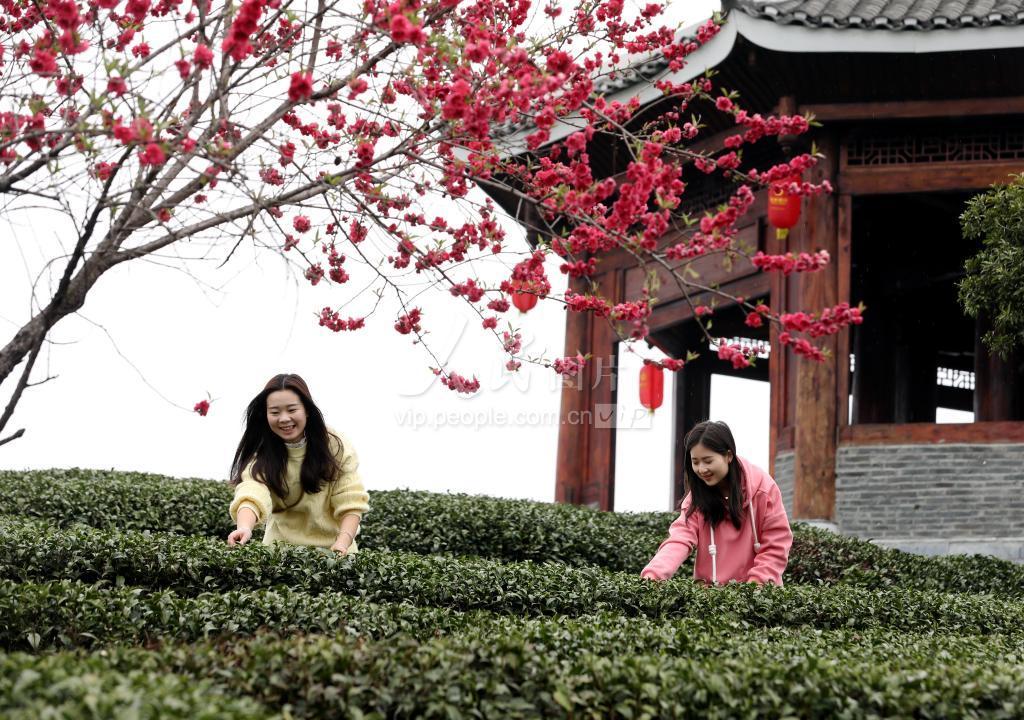 2023年3月6日,村民在广西三江侗族自治县八江镇布央村茶园采茶。