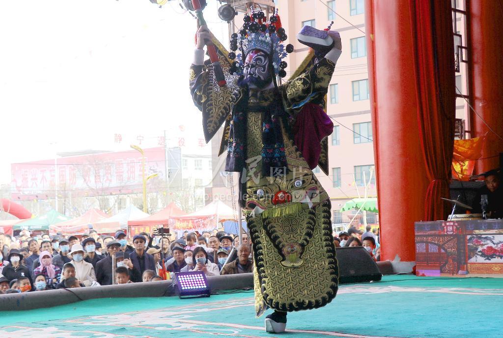 3月18日,在甘肃省平凉市静宁县城关镇高城寨村,一名演员正在进行戏剧表演。
