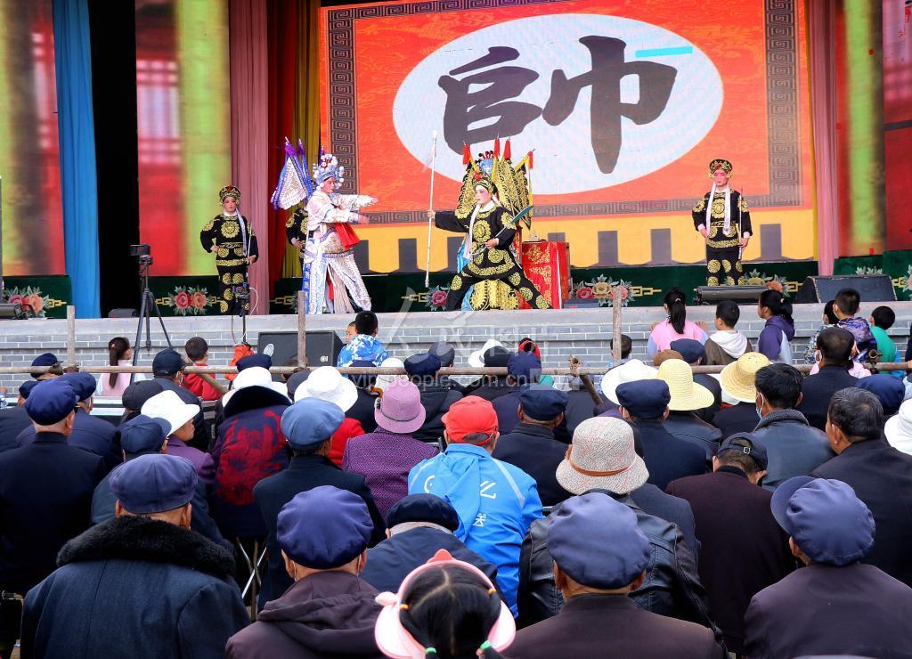 3月18日,在甘肃省平凉市静宁县城关镇高城寨村,村民正在观看秦腔表演。