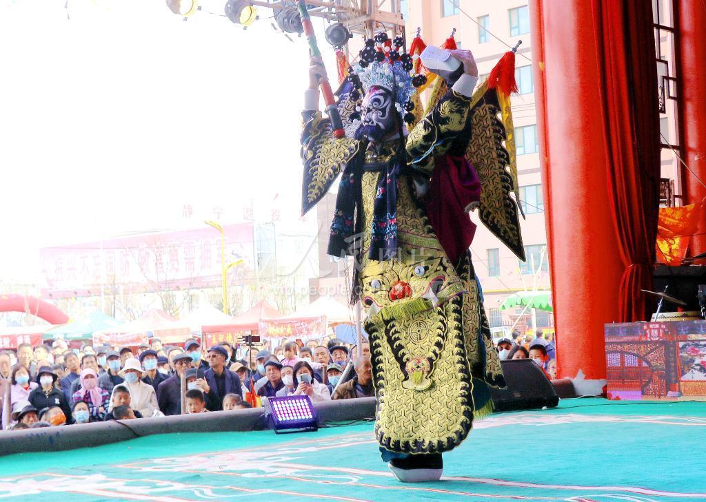 3月18日,在甘肃省平凉市静宁县城关镇高城寨村,一名演员正在进行戏剧表演。