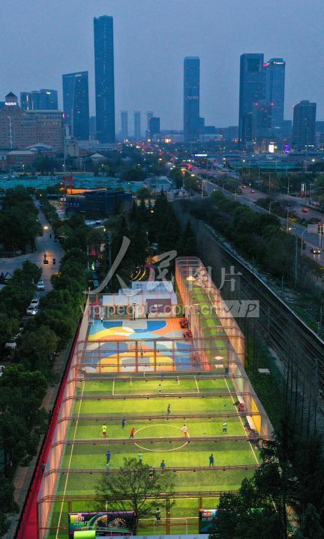 2023年3月18日,在位于江苏省南京市建邺区的24小时城市体育街区,市民在开放试运营的球场运动。