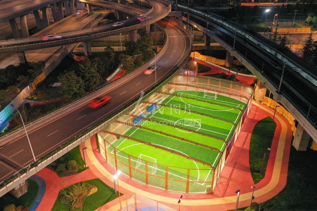 2023年3月18日,在位于江苏省南京市建邺区的24小时城市体育街区,“隐藏”在高架桥下方的一个足球场。