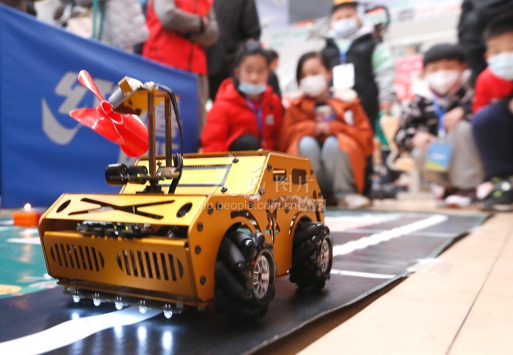 2023年3月19日,山东省青岛市即墨区的学生在参加“智能车应急救援”项目比赛。