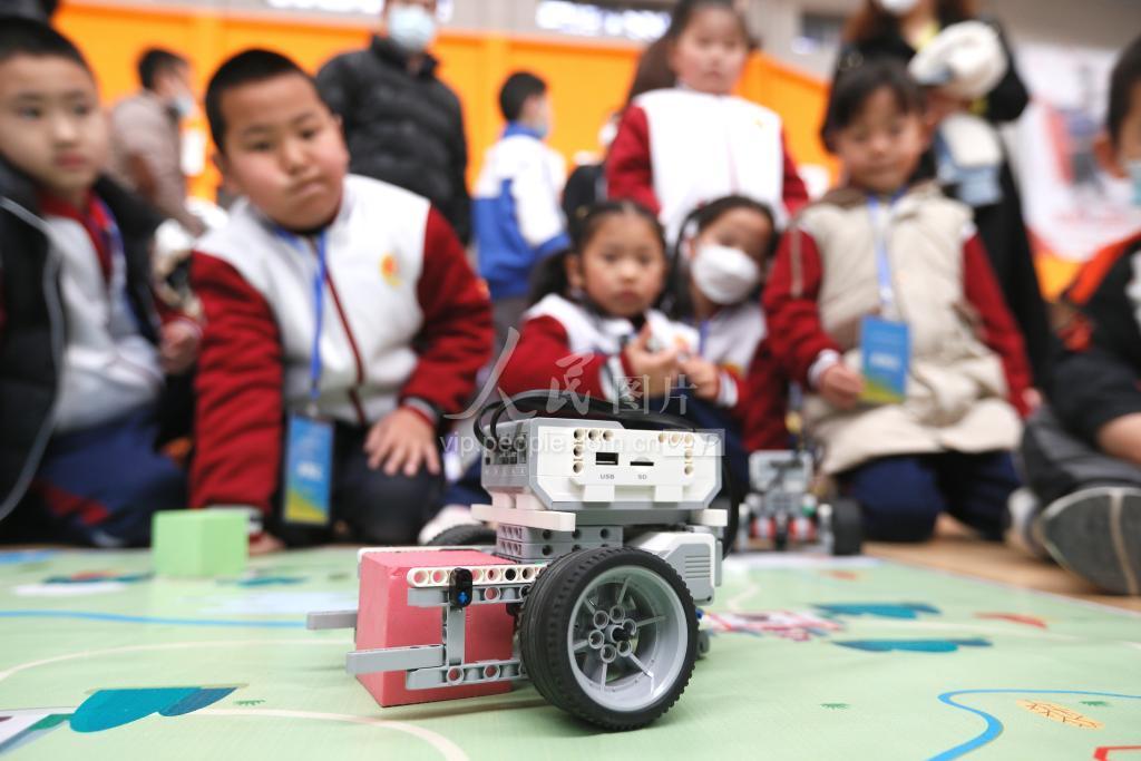 2023年3月19日,山东省青岛市即墨区的学生在参加“迷宫机器人挑战”项目比赛。