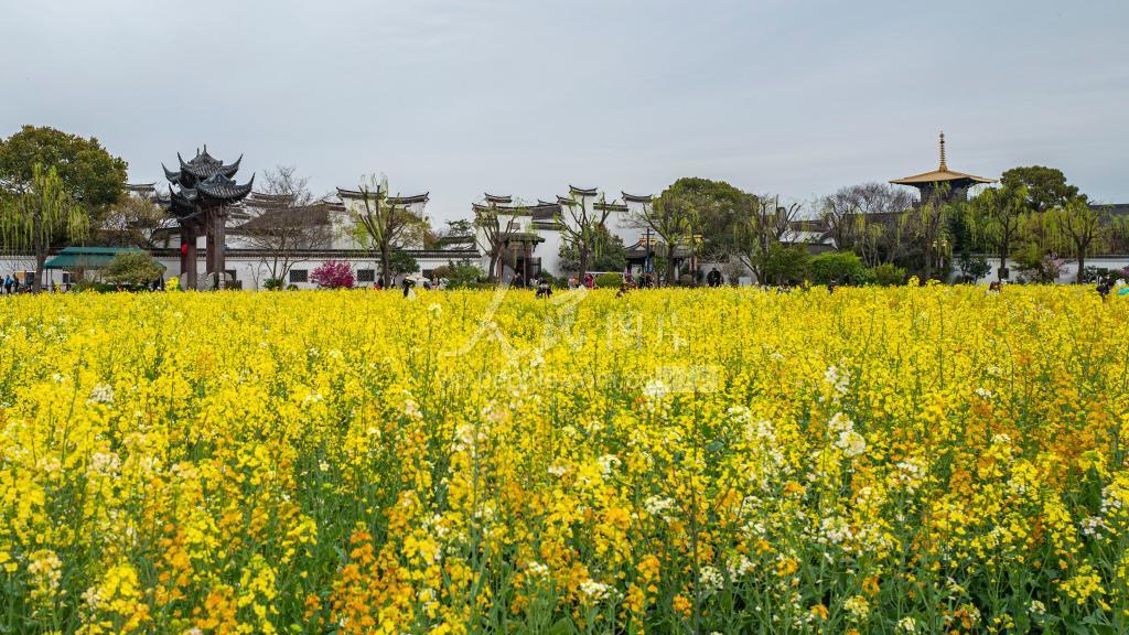 2023年3月19日,上海市松江区,市民游客在广富林文化遗址踏青赏花。