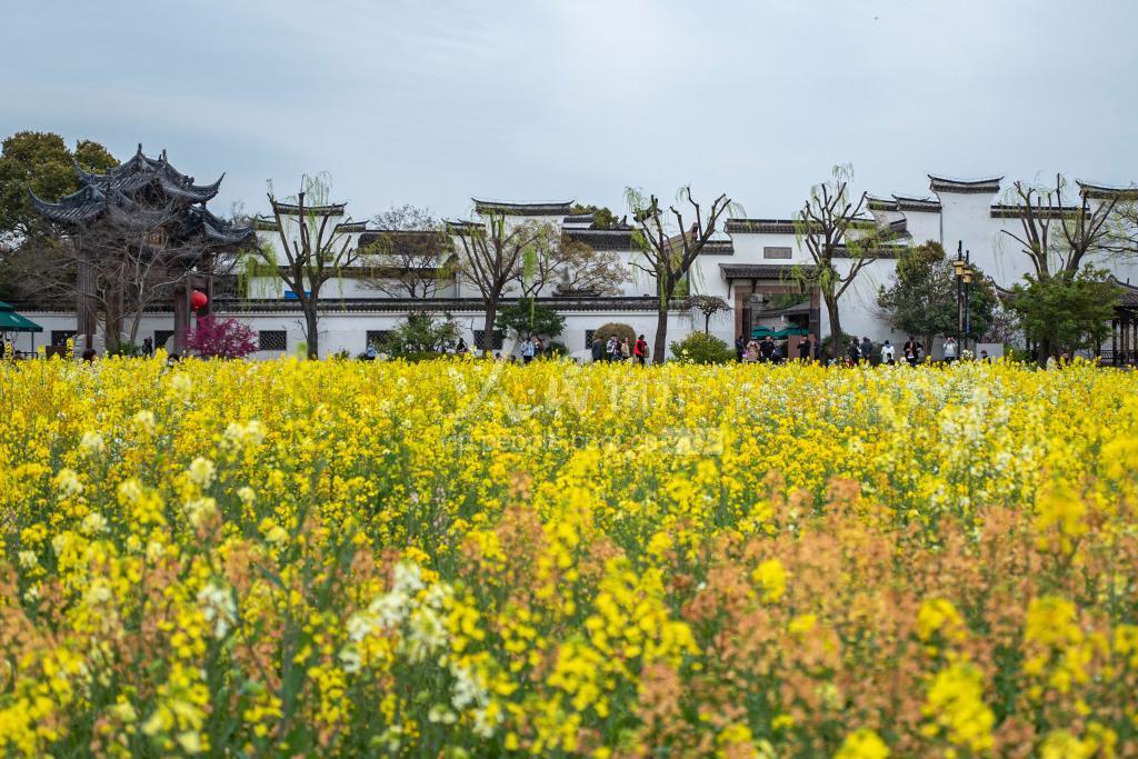 2023年3月19日,上海市松江区,市民游客在广富林文化遗址踏青赏花。