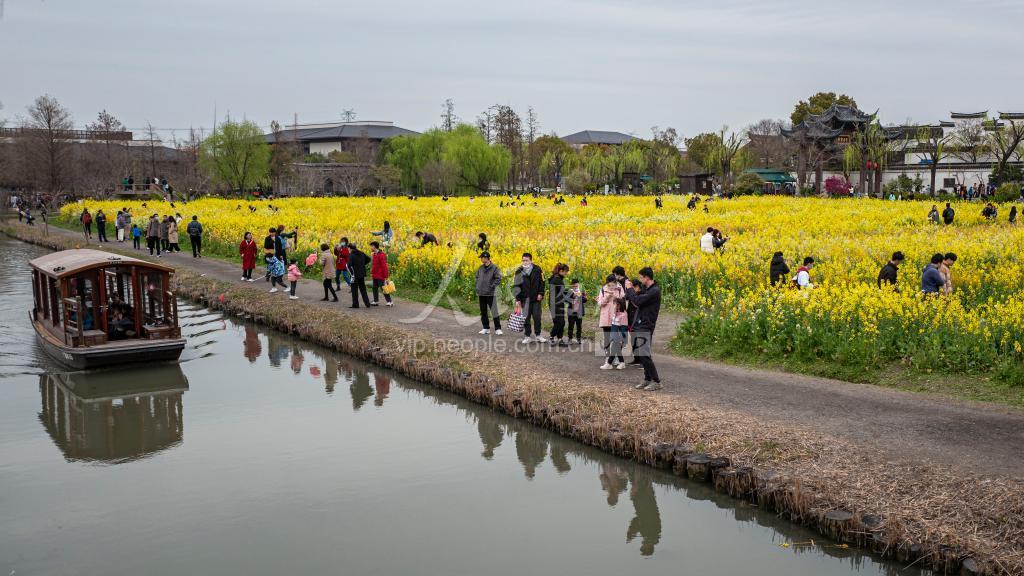 2023年3月19日,上海市松江区,市民游客在广富林文化遗址踏青赏花。