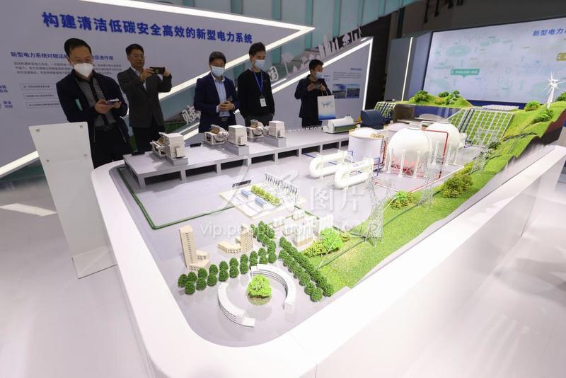 2023年3月29日,参观者在2023中国国际清洁能源博览会暨中国氢能展上观看压缩空气储能电站系统解决方案。