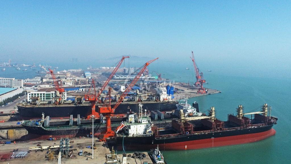 2023年3月30日,山东省各大修造船企业的船坞内,工人们加班加点建造和抢修各类大型船舶。 山东省荣成市是山东省优质修造船基地,近年来,荣成市加大修造船产业技术创新力度,加快产品结构优化升级和优质海工资源盘活力度,强化产业链合作,推动了修造船产业高质量发展。