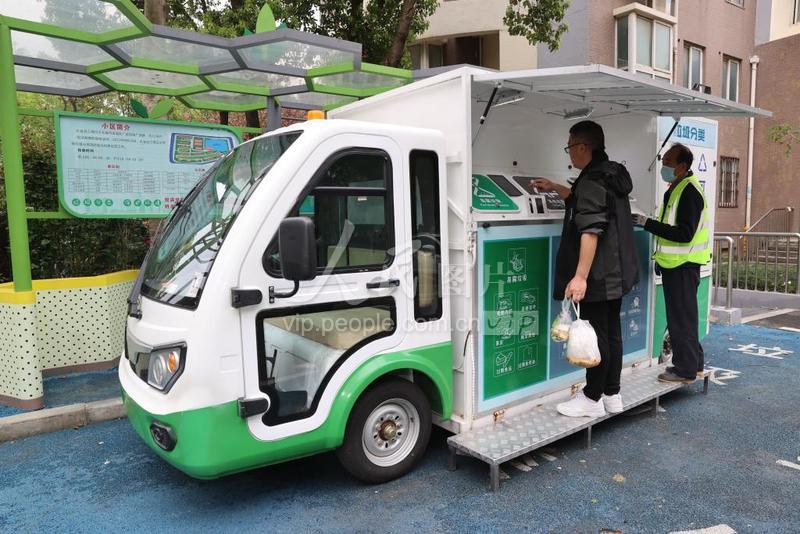 2023年4月4日,江苏无锡,居民在梁溪区尤渡社区尤渡苑小区将分类好的垃圾投入流动收集车。江苏省无锡市梁溪区广益街道尤渡社区区针对老旧小区垃圾分类定时投放点选址难的问题,定制一批集宣传、存放、运输功能于一体,兼具有占地面积小、移动灵活等特点的垃圾分类流动收集车,投放在小区内,有效解决垃圾分类工作中遇到的痛点问题。通过“固定投放点+流动收集车”的模式,节省空间、降低垃圾分类房对居民居住环境等的影响,方便垃圾收集转运。