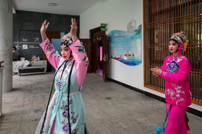 2023年4月6日,浙江省金华市金华师范学校附属小学舞台上,金华艺术学校学生在表演婺剧选段,吸引台下小学生认真观看。 婺剧是浙江最古老的剧种之一,被戏曲界誉为“南戏的活化石”。当日,浙江省金华市金华师范学校附属小学开展“走进婺剧世界、感悟婺剧魅力”婺剧专场演出活动,邀请金华艺术学校学生表演了《三岔口》、《八大锤》、《挂画》等经典婺剧作品,并开展现场互动体验,让同学们亲身感受婺剧传统文化的魅力。
