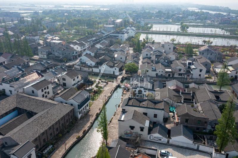 2023年4月7日,浙江省湖州市吴兴区织里镇义皋村,白墙黛瓦,美景如画。