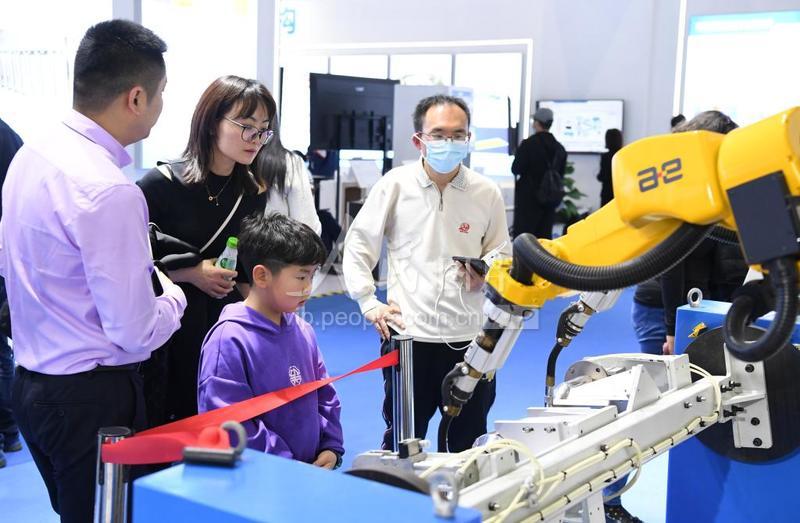 2023年4月27日,安徽省合肥市,市民在第二届中国(安徽)科技创新成果转化交易会展区参观。