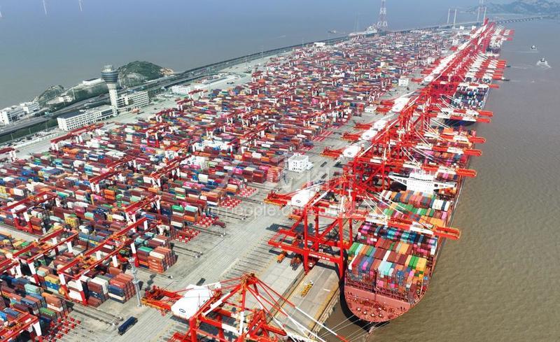 2023年4月27日,上海港洋山深水港区自动化码头,作业繁忙有序。