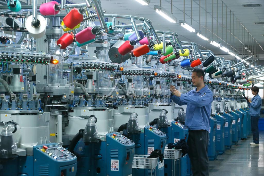 2023年5月4日,在山东省青岛市即墨区的青岛华盛袜业有限公司,制袜工人在生产出口到海外的产品。今年以来,即墨区依托传统纺织服装产业优势,持续优化营商环境,落实助企纾困和稳外贸措施,扶持企业建设智能化生产线、加快两化融合改造、提升自主品牌竞争力,助推企业迈向高质量发展快车道。