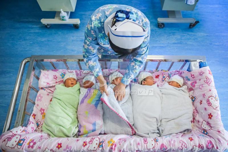 2023年5月12日,湖南省永州市蓝山县中心医院新生儿科,护士在护理新生儿。