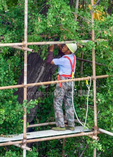 2023年5月16日,在长江南岸的安徽省芜湖市繁昌区荻港镇板子矶上,工作人正对一棵古银杏开展管护作业。据了解,芜湖市目前拥有在册古树名木827棵,其中名木1棵,即板子矶上的银杏树。这棵银杏树围约5米、高约18米,树龄约210岁,具有重要的历史、文物、科研价值。此次对板子矶银杏进行全面修复养护,针对性地开展填堵树洞、防治病虫害、灌水施肥等复壮管护措施,确保古树名木健康生长。近年来,当地政府加大对古树名木的日常管理 、保护和修复力度,加强保护古树名木的宣传,增强全民保护古树名木的意识和主动性。