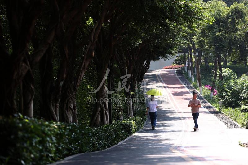 2023年5月17日,市民走在重庆市大渡口区重钢崖线山城步道上。