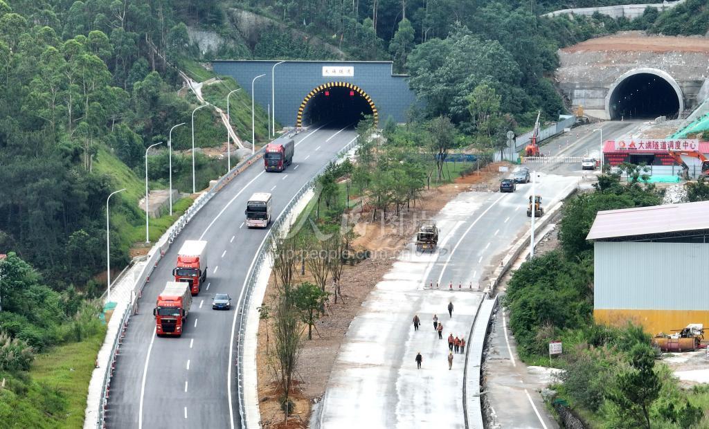 2023年5月26日,车辆从桂柳高速公路鹿寨段大端隧道前通过。