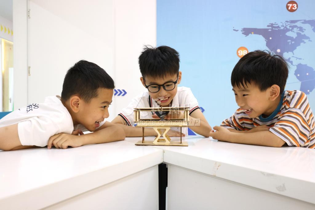 2023年5月27日,位于福建省福州市仓山区的中科格致STEAM科技研学馆,学生在老师的指导下体验科普教育。