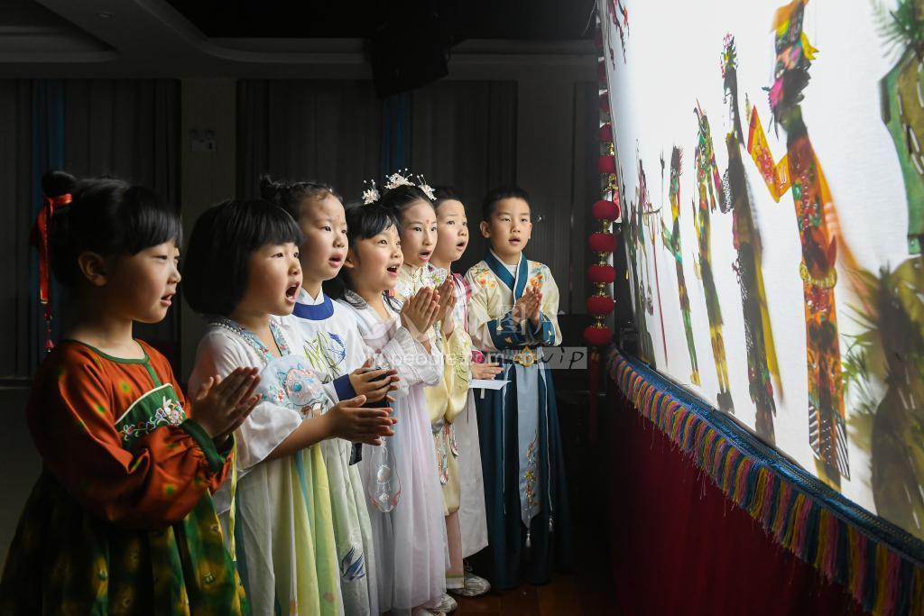 上传时间: 2023-05-27 13:19:07 图片说明: 2023年5月26日,安徽省合肥市直属机关幼儿园迎“六一”亲子游园会,小朋友观看马派皮影戏表演。