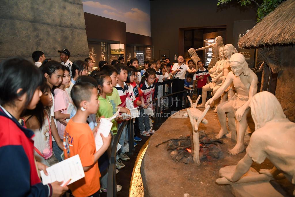 2023年5月26日,江西省樟树市观上中心小学的学生在樟树市博物馆参观学习。 随着博物馆“研学热”日渐火爆,樟树市博物馆充分发挥自身馆藏、展览等资源优势,结合学生课本知识和文物保护知识,开展“穿越千年 博物知旅”“探访筑卫城遗址(国字山大墓)发掘奥妙”、做一回“小小考古家”、修复一件出土“文物”、听一次“国字山大墓背后的故事”等形式多样的研学活动,让广大学生在参观、体验的过程中贴近乡土、传承文明,厚植家国情怀,赓续文化血脉,增进他们的文化认同感和自豪感。