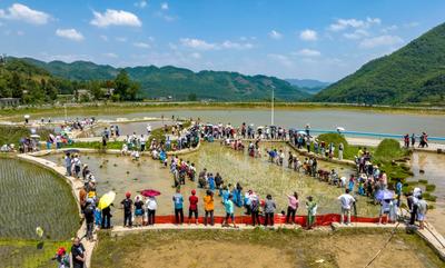 2023年5月28日,贵州省毕节市百里杜鹃管理区黄泥乡朝门村举行乡村避暑游启动仪式暨“插秧节”活动,吸引众多游客前来感受乡村美景,体验农耕民俗文化。 近年来,黄泥乡积极推进低效旱地转化高效水田工程,在朝门村发展生态水稻产业,并依托独特的自然风光和丰富多彩的民俗文化发展乡村旅游,走上农旅整合发展之道,带动群众增产增收,助力乡村振兴。