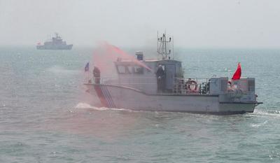 2023年6月1日,参演船舶在河北省秦皇岛市海域多场景船舶溢油应急演练中。