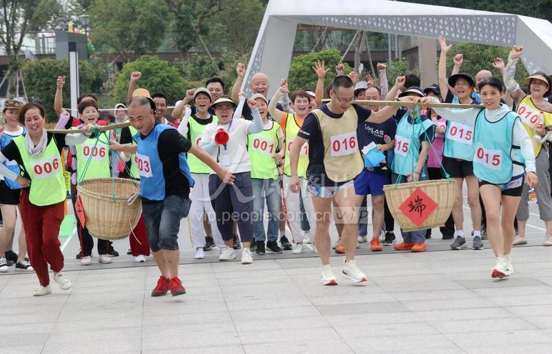 2023年6月22日,浙江省湖州市德清县阜溪街道在兴山未来社区开展“浓情端午 趣味相伴”趣味运动会,进行挑扁担、滚圆匾、勺子运球等项目比赛,共享运动乐趣。