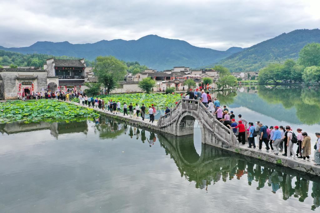 2023年6月28日,安徽省黄山市黟县宏村景区,游人如织。