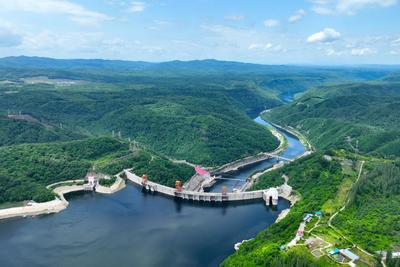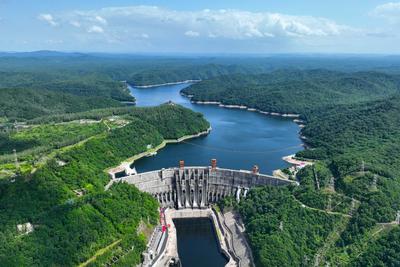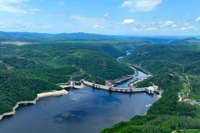 2023年7月5日,俯瞰位于吉林省桦甸市境内的松花江上游的吉林白山大坝,水电工程与蓝天白云和绿水青山构成了一幅美丽画卷。 据悉,吉林白山发电厂总装机容量200万千万,设计年均发电量29.53亿千万时,该水电工程投运发电以来,不仅成为促进松花江大保护、美丽中国建设的绿色工程,更带动了防汛、灌溉、航运、旅游和渔业等方面高质量发展,为当地经济社会发展注入强劲动力。