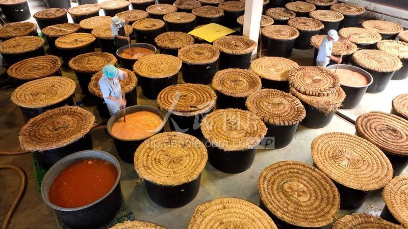 2023年7月18日,位于浙江省湖州市德清县禹越镇的五味和食品有限公司酿醋生产基地,工人忙着进行入料、翻醅、装缸、封缸等制醋工序,利用高温生产香醋。这种传统酿醋技艺以当地优质大米、糯米、纯中药制作醋曲,经过蒸煮、酿晒、发酵等30余道工序制作而成,食醋产品畅销海内外市场,订单迎来产销两旺的良好势头。