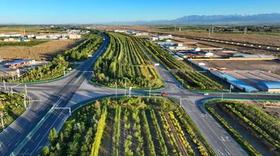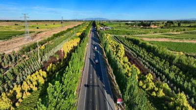 2023年7月21日,甘肃省张掖市民乐县交通大林带工业园区段,道路两边高低错落的乔灌木搭配的相得益彰。 近年来,甘肃省民乐县牢固树立“绿水青山就是金山银山”的理念,以创建国家园林县城为目标,抢抓全省实施黄河流域治理保护等重大政策机遇,依托山水林田湖草祁连山区植被恢复与保护项目,通过实施“一园三带”生态示范工程,加快推进国家生态安全屏障综合试验区建设,大力推进“生态立县”战略,围绕国道227线和县乡通村公路为重点,通过交通大林带建设,进一步构筑道路沿线生态屏障。