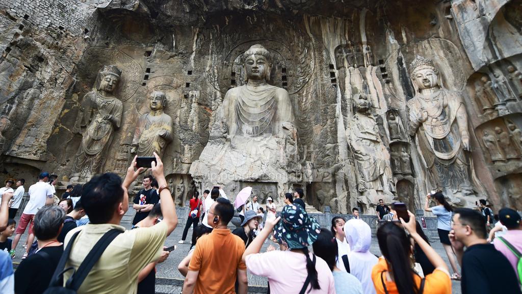 进入暑期旅游旺季,众多市民和游客来到河南洛阳龙门石窟景区,领略千年石窟石刻造像艺术的独特魅力,探访历史文化遗产的美妙意境,享受假期里的休闲时光。洛阳市依托厚重的历史文化积淀,加大文旅消费补贴优惠力度,文旅市场“暑期档”持续升温。