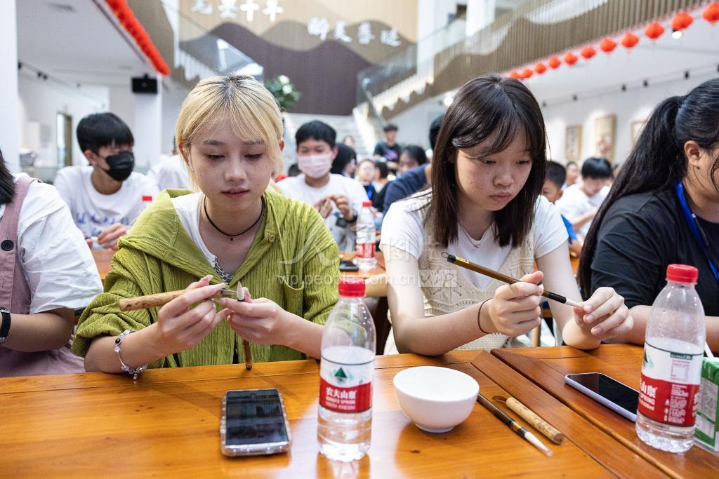 2023年8月4日,参与“绿水青山行 大美汉字情”的60余位内地、香港、澳门青少年在浙江省湖州市南浔区了解湖笔技艺、感受江南水乡文化意蕴。