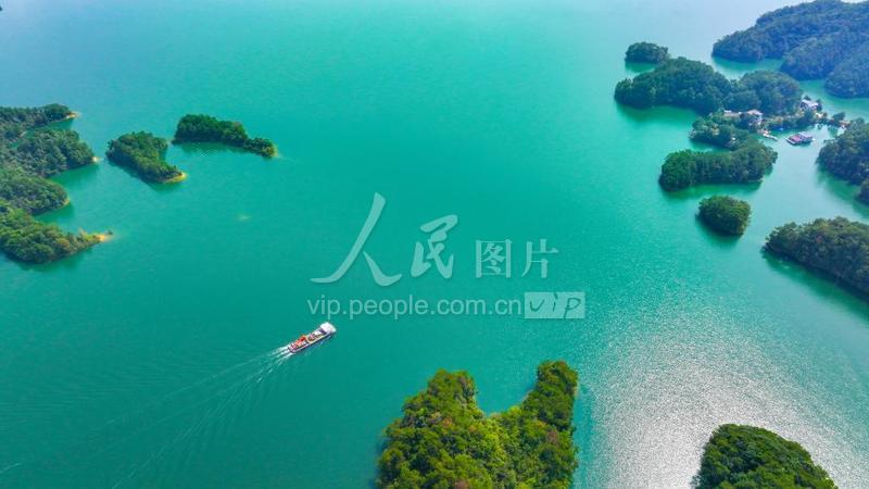 2023年8月7日,从浙江省杭州市淳安县界首乡空中俯瞰千岛湖,湖面上绿色小岛星罗棋布、港湾纵横交错,风景美如画。 近年来,浙江省杭州市淳安县推进山水林田湖草沙一体化修复、耕地保护、节约集约用地等工作,着力构建国土空间保护利用新格局,全力呵护好“四季繁星、千岛碧水、金紫叠翠、青溪净土”的美丽图景,营造出人与自然和谐共生的生态画卷。