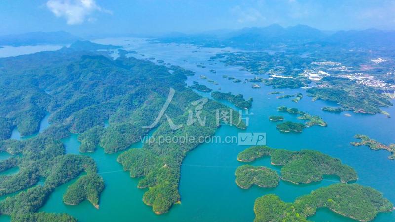2023年8月7日,从浙江省杭州市淳安县界首乡空中俯瞰千岛湖,湖面上绿色小岛星罗棋布、港湾纵横交错,风景美如画。 近年来,浙江省杭州市淳安县推进山水林田湖草沙一体化修复、耕地保护、节约集约用地等工作,着力构建国土空间保护利用新格局,全力呵护好“四季繁星、千岛碧水、金紫叠翠、青溪净土”的美丽图景,营造出人与自然和谐共生的生态画卷。