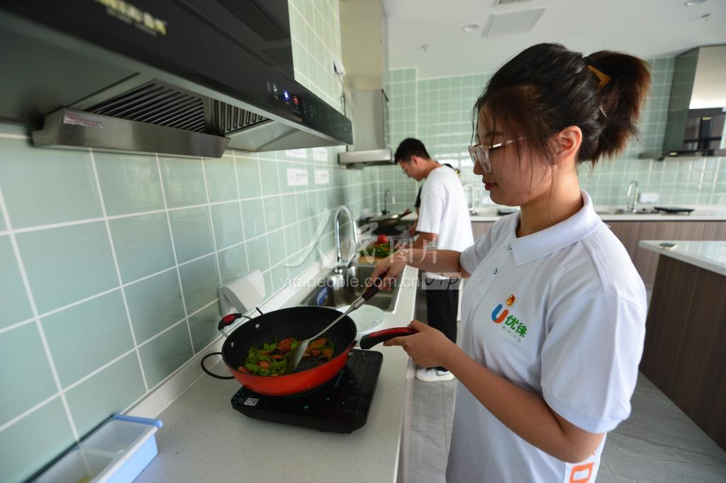 2023年8月10日,在山东青岛国际博士后创新创业园“优徕青年社区”,入住的毕业生在使用共享餐厅。