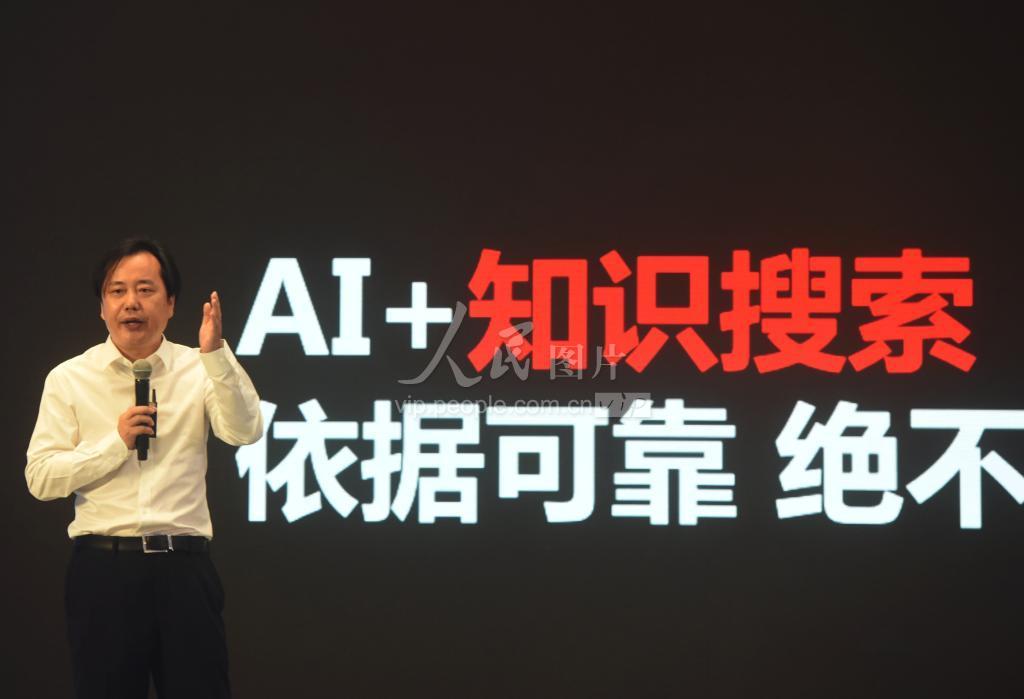 2023年8月18日,新华三集团高级副总裁张鹏在杭州萧山区举行的共建图灵小镇发布会上向观众介绍人工智能技术。