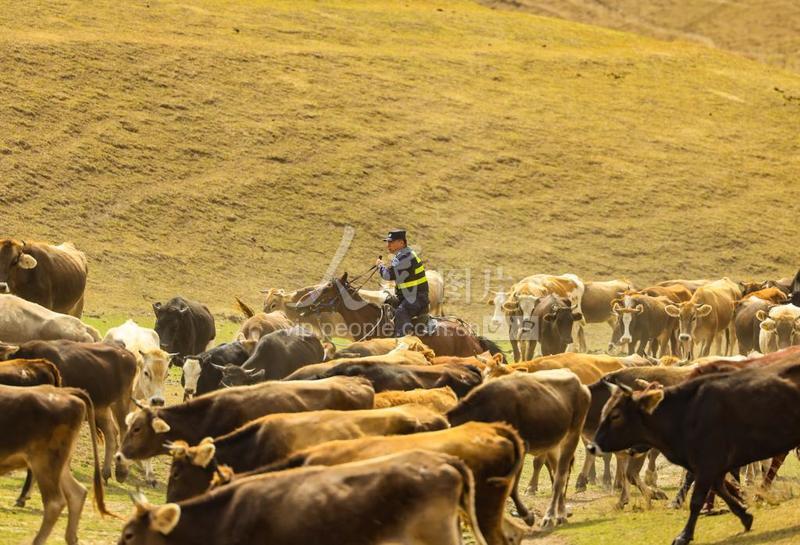 2023年8月31日,新疆伊犁边境管理支队红卡子边境派出所民警协助牧民进行秋季转场。