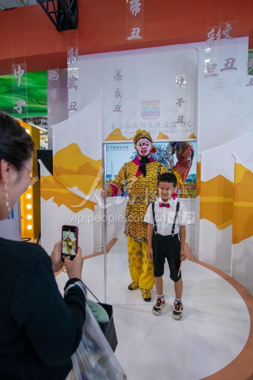 9月3日,在文旅服务展区,小朋友与京剧演员互动,感受前所未有的京剧文化之旅。