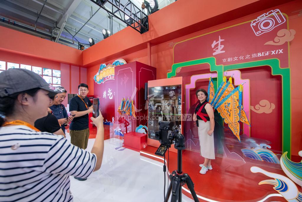 9月3日,在文旅服务展区,观众登台亲身体验“京剧IP”,感受前所未有的京剧文化之旅。