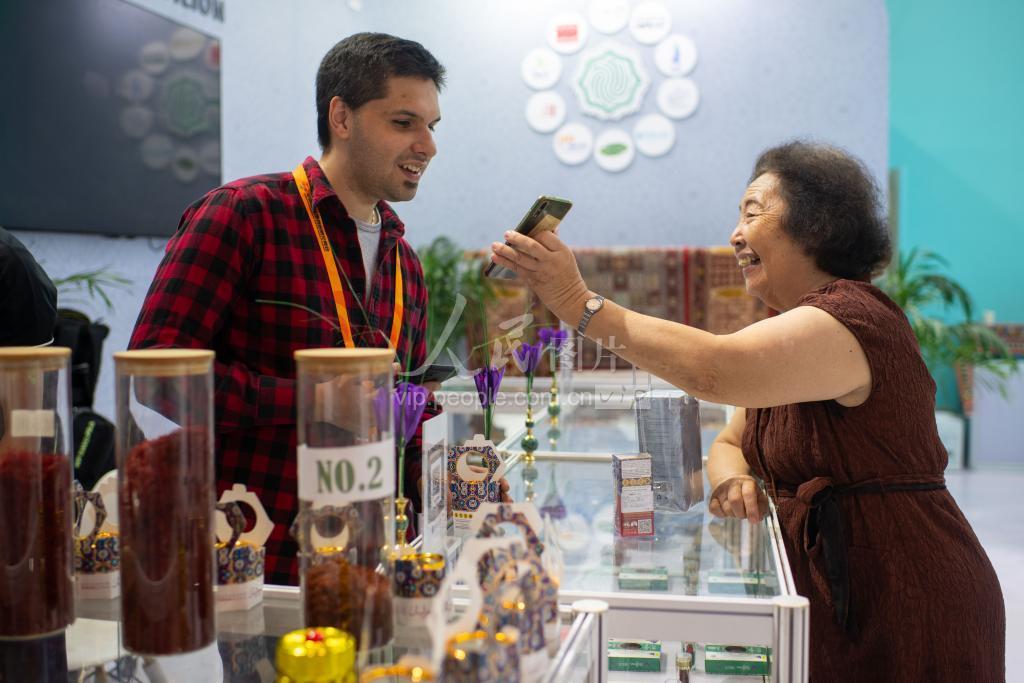 9月4日,在服贸会综合展区,观众正在了解来自伊朗的特产。
